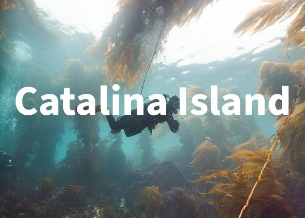 Catalina offers a unique chance to experience cold water diving with excellent visibility, featuring kelp forests, wrecks, deep dive sites, and frequent sightings of the majestic Giant Black Seabass!